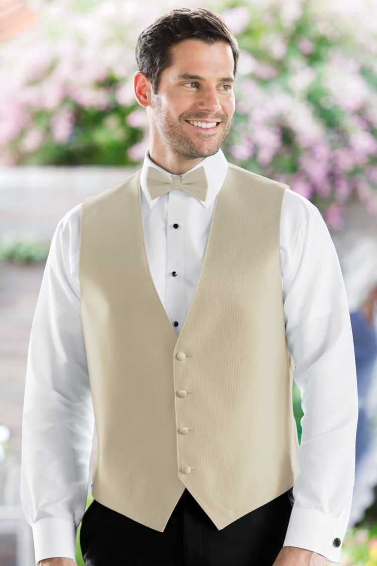 Rental ensemble includes coat, pant, shirt, tie, vest, and basic jewelry.